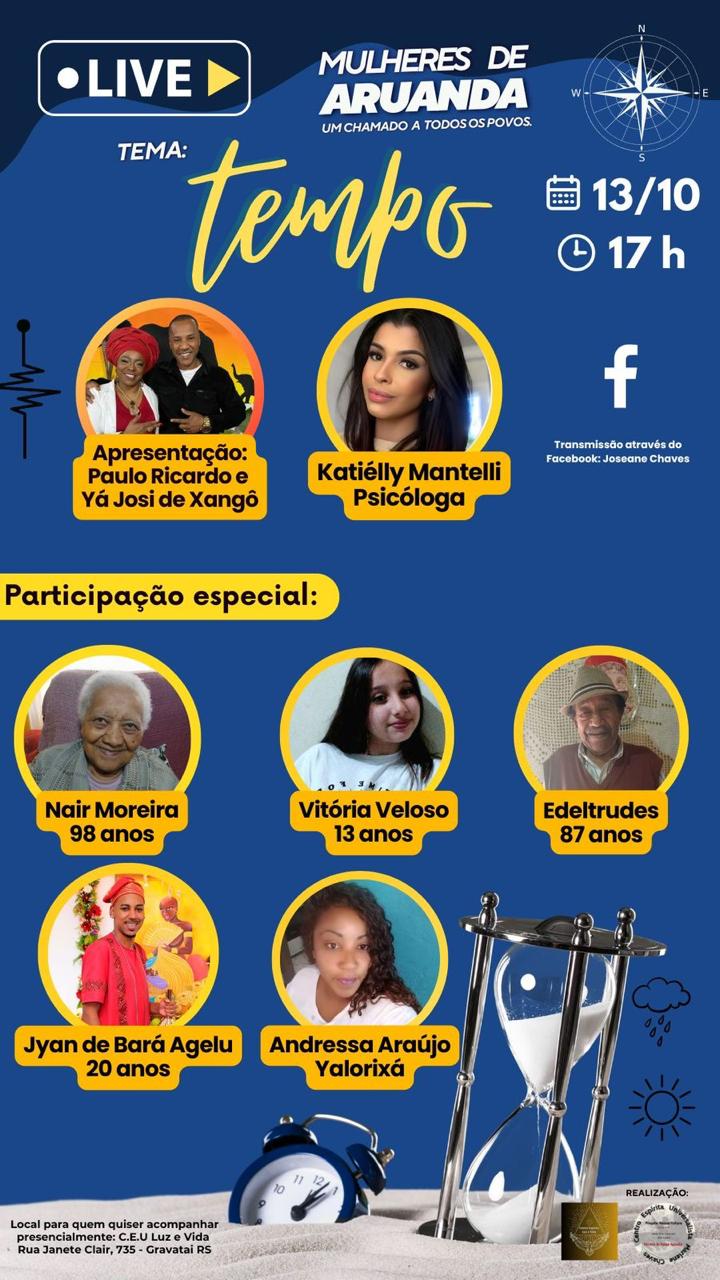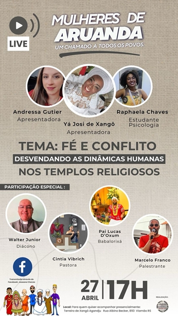 Desde 2023, o projeto “Mulheres de Aruanda” vem ampliando vozes, saberes e caminhos através de lives mensais dedicadas ao diálogo inter-religioso e à valorização da ancestralidade espiritual.
